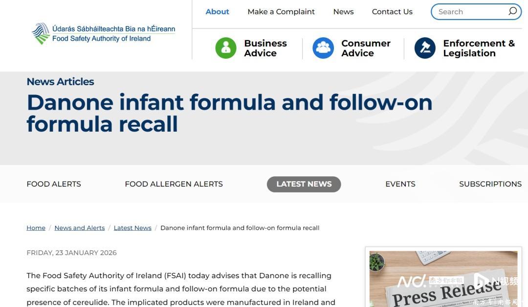 凭据爱尔兰食物安全局1月23日发布的公告,达能正在调回特定批次的婴儿配方奶粉和后续配方奶粉,关联居品在爱尔兰出产,并出口到多个欧友邦家、英国和其他国度,但未在爱尔兰分销。南王人湾财社记者发现,西班牙、以色列、英国、法国等几个国度已发布调回奉告,据悉,特定批次居品波及Gallia、Blédilait、ALMIRON PROFUTURA等品牌。