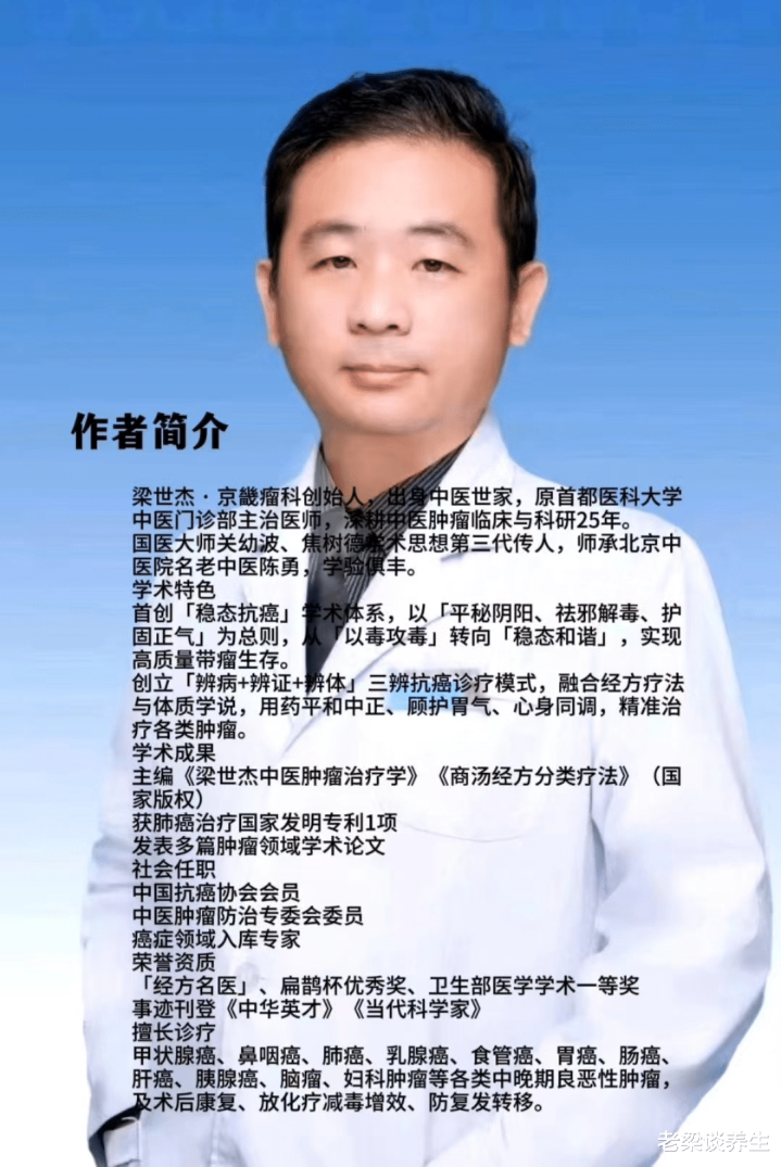 作家简介:梁世杰,京畿瘤科首创东谈主,出生中医世家,原皆门医科大学中医门诊部主治医师,毕业于河北医科大学,深耕中医肿瘤临床与科研25年。为国医行家、肝病泰斗关幼波,风湿病泰斗焦立德学术想想第三代传东谈主,师承皆门医科大学附庸北京中病院肝病科驰名老中医陈勇,侍诊研习多年,尽得真传,学验俱丰。
