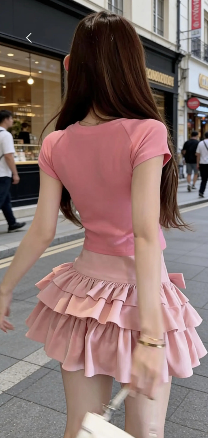 凯发官网 纯欲风穿搭 甜好意思穿搭 上衣 短袖t恤 半身裙