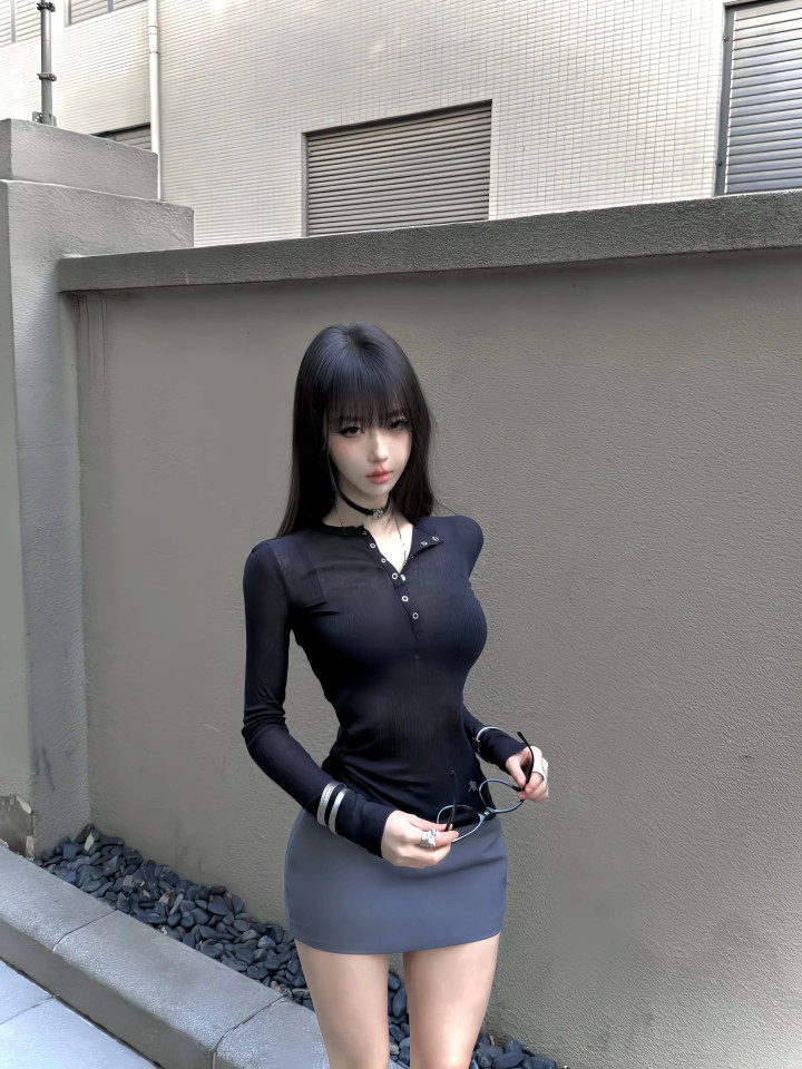 K8官网 掌心的萤火以冬 玄色上衣 玄色诚挚衫 微透小衫