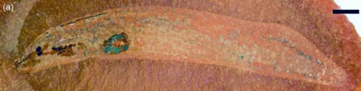 这个生物全身很柔嫩,莫得鳞片;它似乎莫得眼睛也莫得昭彰的鱼鳍,不外不错看到其尾部扁平,应该是有尾鳍的。