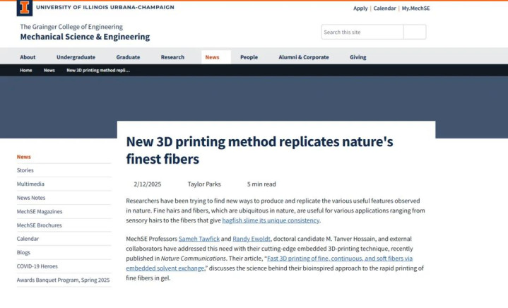 此外,2025年伊利诺伊大学的发布于《当然通信》期刊上的一项研讨合计:盲鳗黏液中的超细纤维启发了新的3D打印时刻,不祥制造出直径仅1.5微米、并列蜘蛛丝的精细结构,也许不错在微电子、半导体制造和生物医学工程中阐发遑急作用。