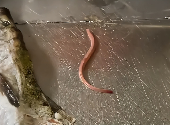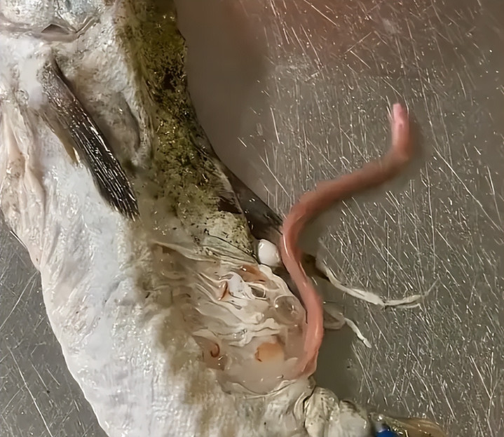 好在视频背面很快就揭露了鱼的体内是什么东西。博主在鱼的中段切开鱼皮后,一条粉色的形似鳗鱼的生物从阿谁快速的钻了出来!蛇形扭动着试图逃离。